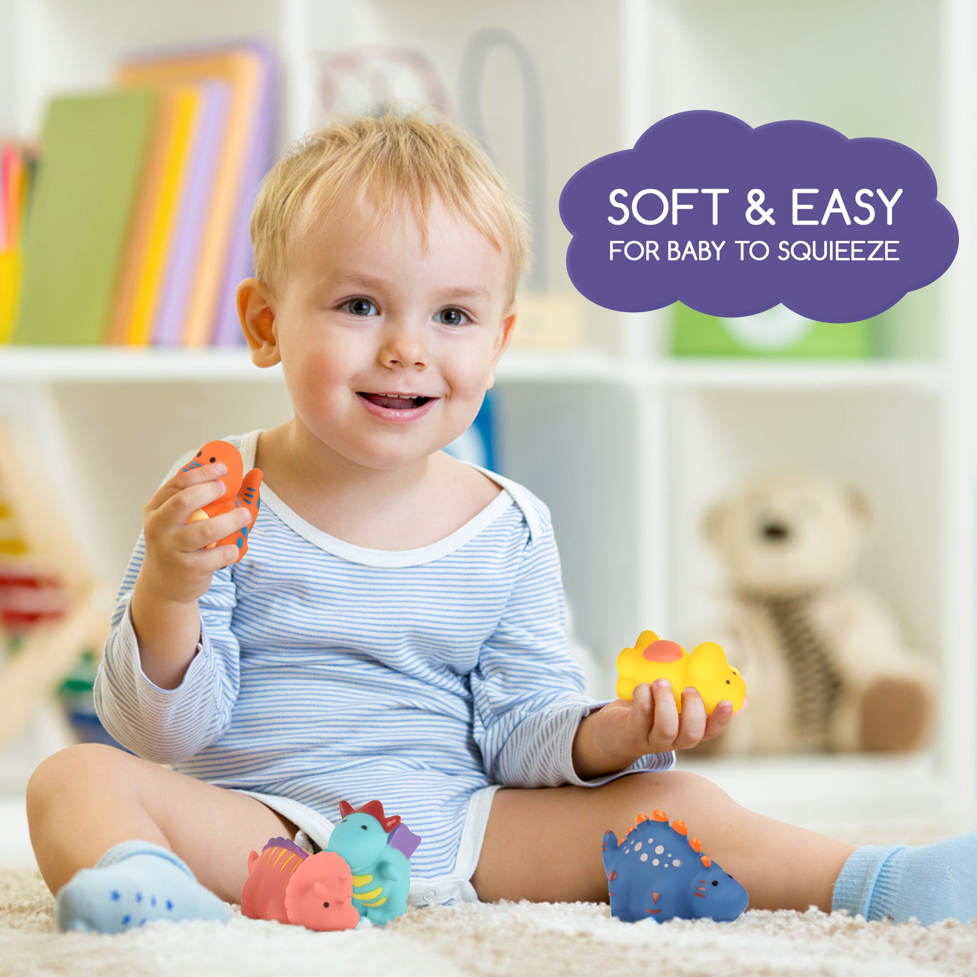 【Safe and Secure】Ensure your little one's safety during splash time! All our dino bath toys are crafted from organic rubber, free from toxic substances and BPA, making them safe for babies over 6 months old. These solid bath toys quickly dry off after use, ensuring they stay odor-free and mold-free.